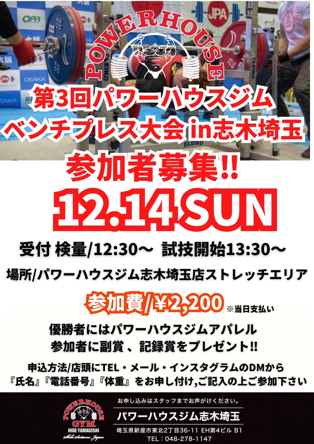 【志木埼玉店】第3回ベンチプレス大会開催!!