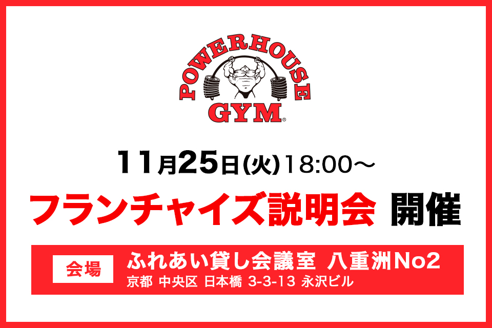 11月25日(火)パワーハウスジム「フランチャイズ説明会」開催のお知らせ @東京駅近く