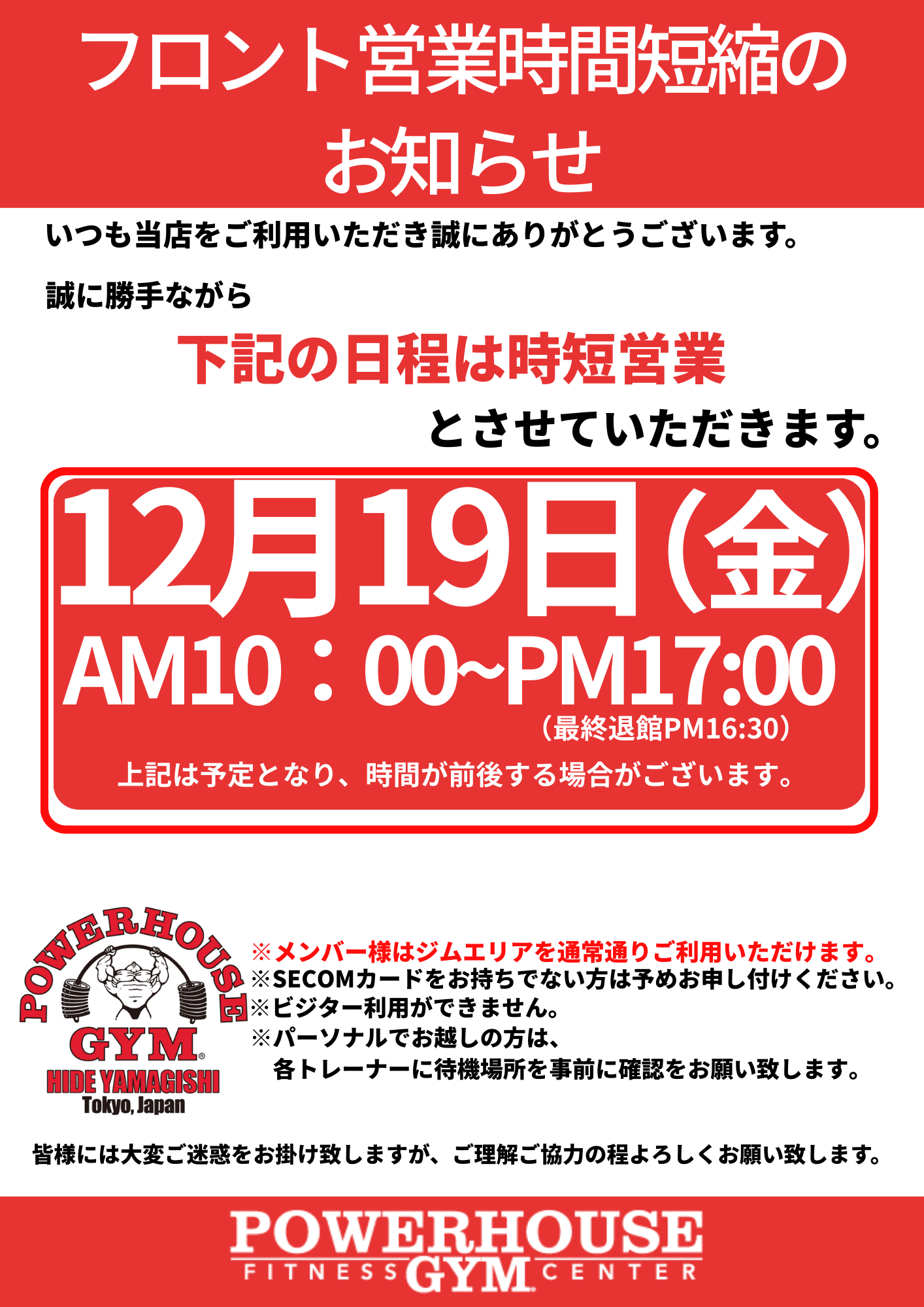 誠に勝手ながら、下記日程は 時短営業 とさせていただきます。